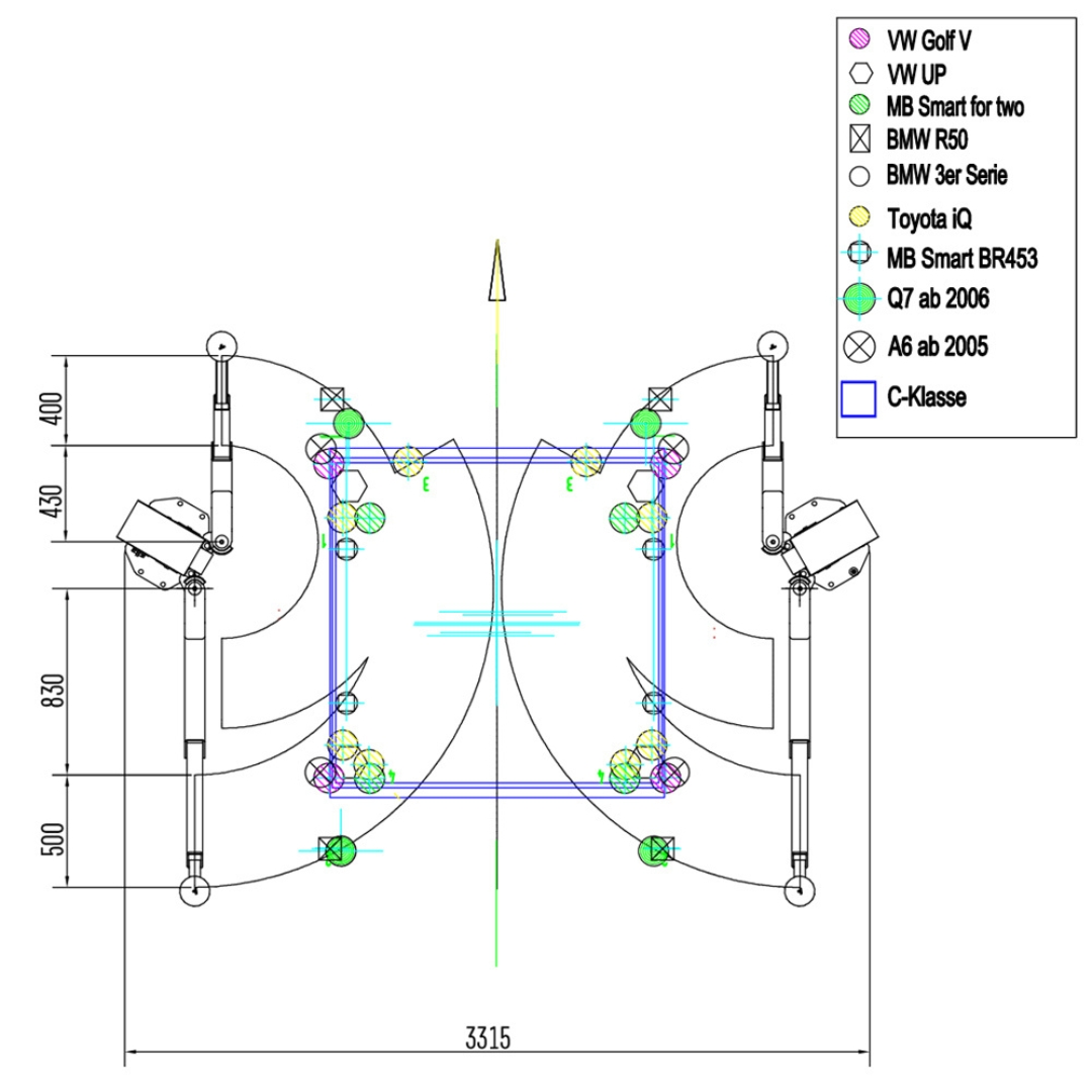 - Variable Breite: Wenn du überwiegend mit breiteren Fahrzeugen arbeitest, hast du die Möglichkeit, die Säulen bei der Installation etwas breiter aufzustellen. Das ist auch sinnvoll, wenn du den Bereich unter der Bühne bei Nichtbenutzung als Parkplatz nutzt. Allerdings musst du hier den Galgen und evtl. die Kabel verlängern. Auch solltest du einen Monteur bzw. TÜV-Prüfer, der die Abnahme vornimmt zu Rate ziehen.