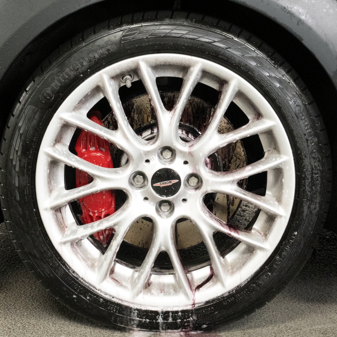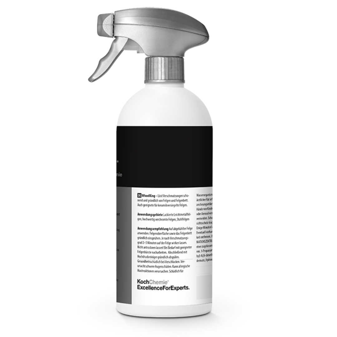 WheelKing ist dein starker Spezialist für die perfekte Felgenreinigung. Ob Leichtmetall-, Stahl- oder Chrom-Felgen: Damit entfernst du Bremsstaub, Straßenschmutz und selbst hartnäckige Verschmutzungen gründlich und schonend – ganz ohne aggressive Säuren. Spezielle reaktive Komponenten zeigen durch Rotverfärbung die Reinigungswirkung unmittelbar an. So siehst du: WheelKing wirkt. Auch bei keramikversiegelten Felgen kannst du unseren WheelKing problemlos benutzen.