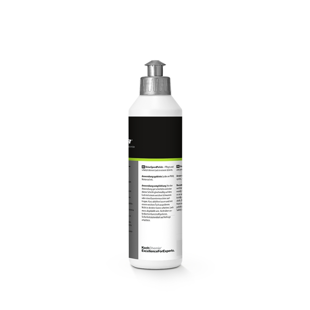 ShineSpeedPolish ist dein Partner für strahlenden Hochglanz! Pflegt und schützt deinen Lack in einem Schritt und hält ihn länger gegen Umwelteinflüsse fit. Ob mit der Hand oder Maschine, auf allen Lackarten sorgt sie für ein starkes Ergebnis.