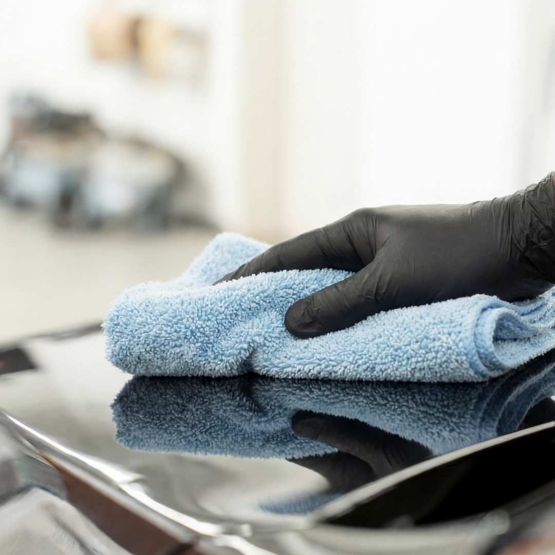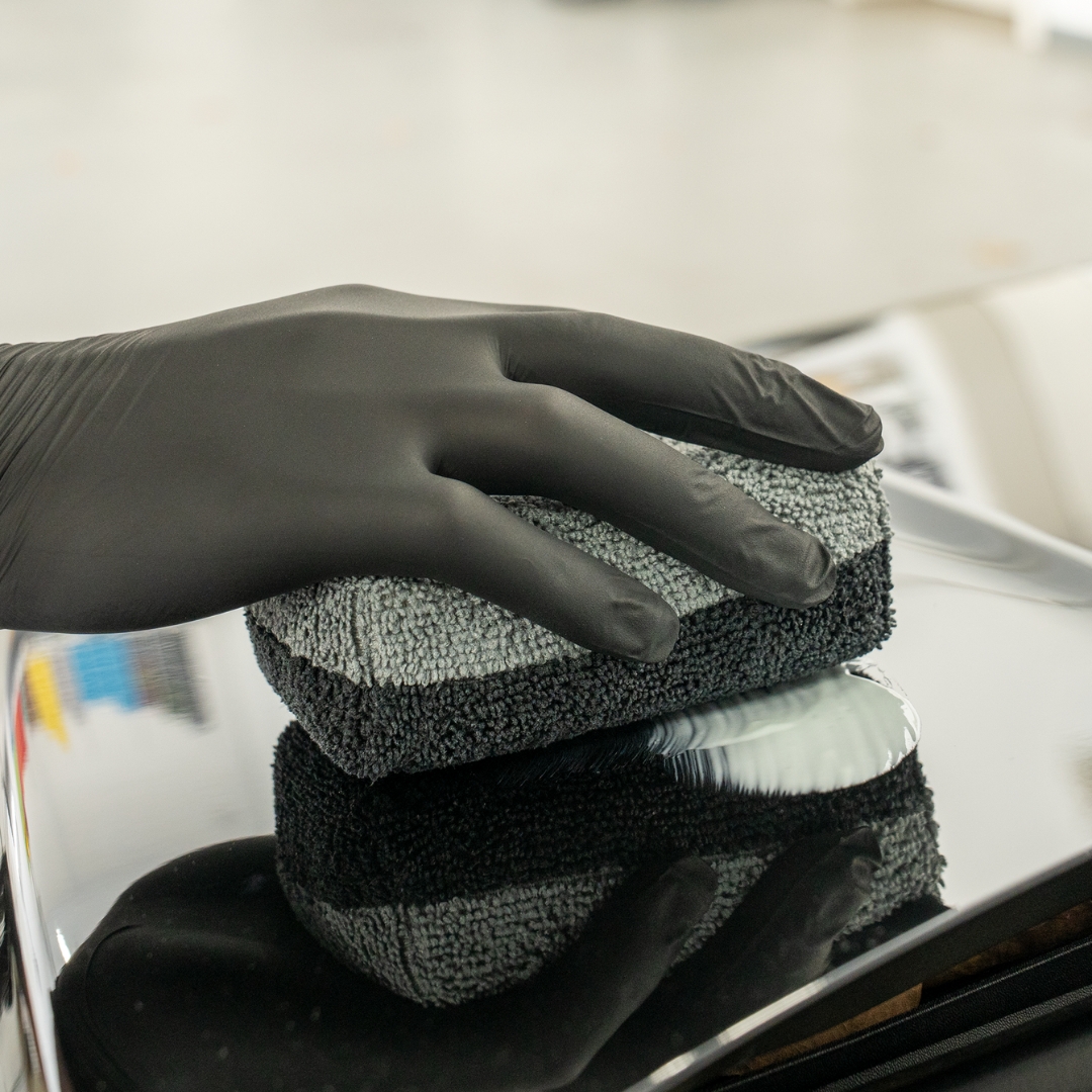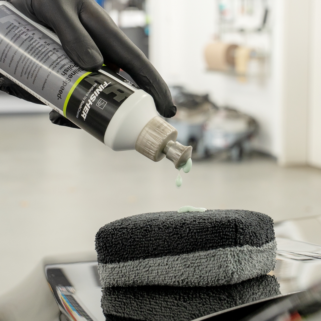 Schüttel die Flasche vorher kurz durch. Dann trägst du mit einem weichen Schwamm eine dünne Schicht gleichmäßig auf den Lack auf per Hand oder mit der Exzentermaschine. Lass die Politur kurz ablüften und poliere die Reste danach mit dem Polish & Sealing Towel auf Hochglanz aus. Achte darauf, dass du dein Fahrzeug nicht in direkter Sonne behandelts und der Lack abgekühlt ist. Nicht über unlackierte Kunststoffteile polieren.