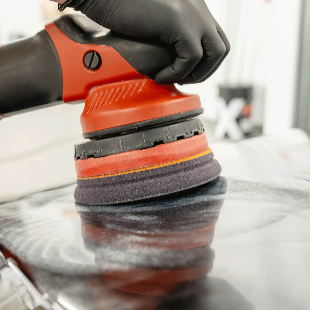 Schüttel die Flasche vorher kurz durch. Dann trägst du fünf erbsengroße Tropfen auf ein One Cut Pad auf. Anfänglich die Politur mit deiner Exzenterpoliermaschine bei niedriger Drehzahl auf dem Lack verteilen und anschließend bei höherer Drehzahl im Kreuzgang bauteilweise gründlich auspolieren. Nach dem Poliervorgang mit dem Polish & Sealing Towel ordentlich abpolieren. Nicht über unlackierte Kunststoffteile polieren. Nicht in der Sonne oder auf heißen Oberflächen anwenden.
